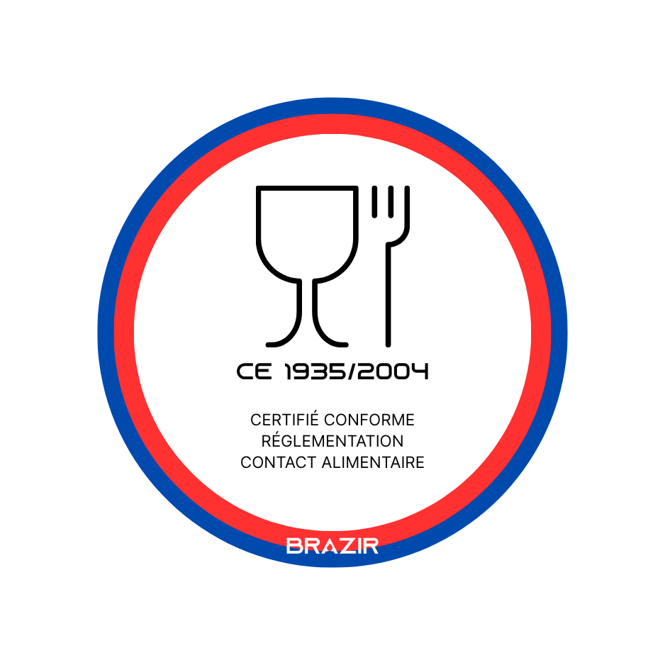 Nos plaques de cuisson BRAZIR® sont certifiées pour le contact alimentaire direct, selon la norme européenne CE 1935/2004.